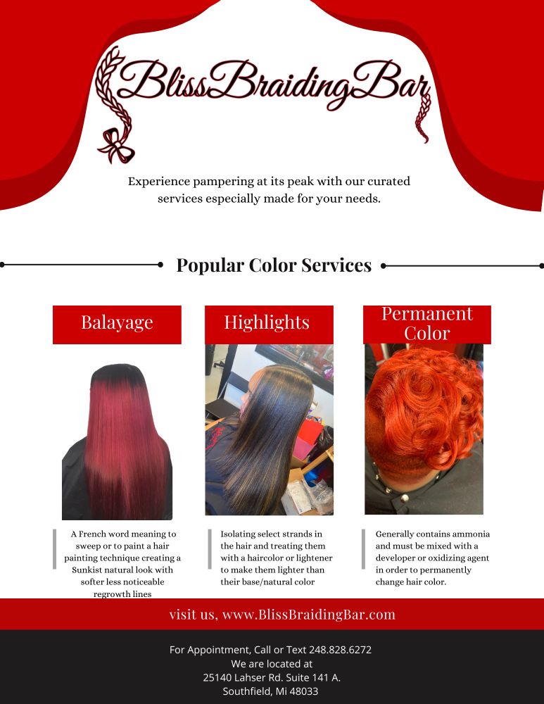 Blissbraidingbar LLC specializes in hair extension services tailored to meet individual client needs. Situated at 25140 Lahser Rd, Unit 141 A in Southfield, Michigan, the salon focuses on delivering high-quality braiding techniques and products that enhance natural beauty.