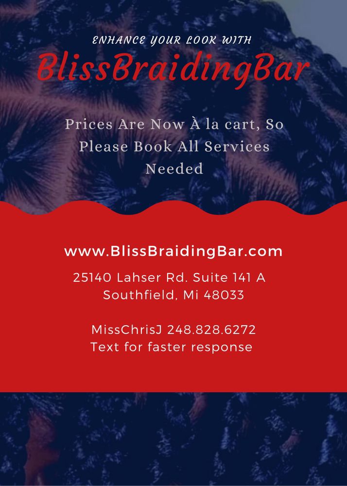 Blissbraidingbar LLC is located in Southfield, Michigan and serves local residents and visitors seeking reliable Hair Extension Service services.